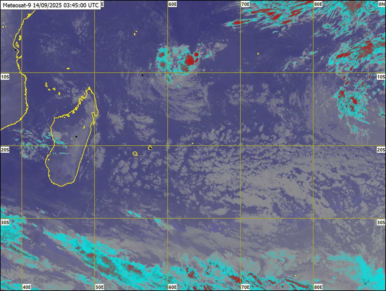 Un courant d'air léger à modéré circule sur notre région, selon un communiqué de la Station météo de Vacoas émis à 04 h 30 ce dimanche 14 septembre 2025. Le ciel sera mi-couvert à l'est, au sud et sur les hauteurs ce matin et au cours de la journée avec des ondées occasionnelles. Beau temps ailleurs. La température maximale sera entre 21 et 23 degrés sur les hauteurs et entre 25 et 28 degrés sur les régions côtières. Essentiellement beau cette nuit. La température minimale sera entre 14 et 16 degrés sur le plateau central et entre 18 et 20 degrés sur le littoral. Le vent soufflera de l'est d'environ 20 km/h. La mer sera agitée au-delà des récifs avec des houles du sud-ouest de l'ordre de 2 mètres.