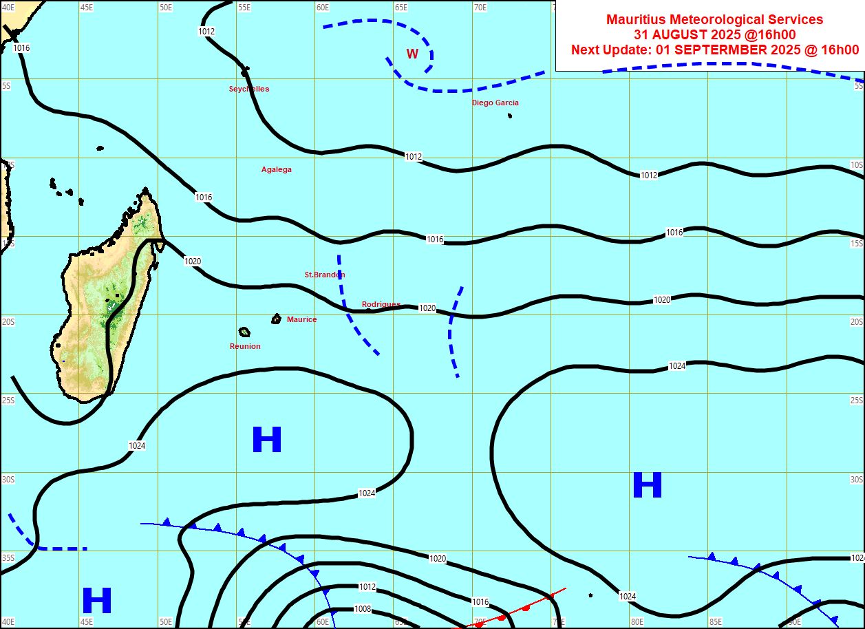 Communiqué de la météo pour Maurice émis à 04h30 lundi 01 septembre 2025.